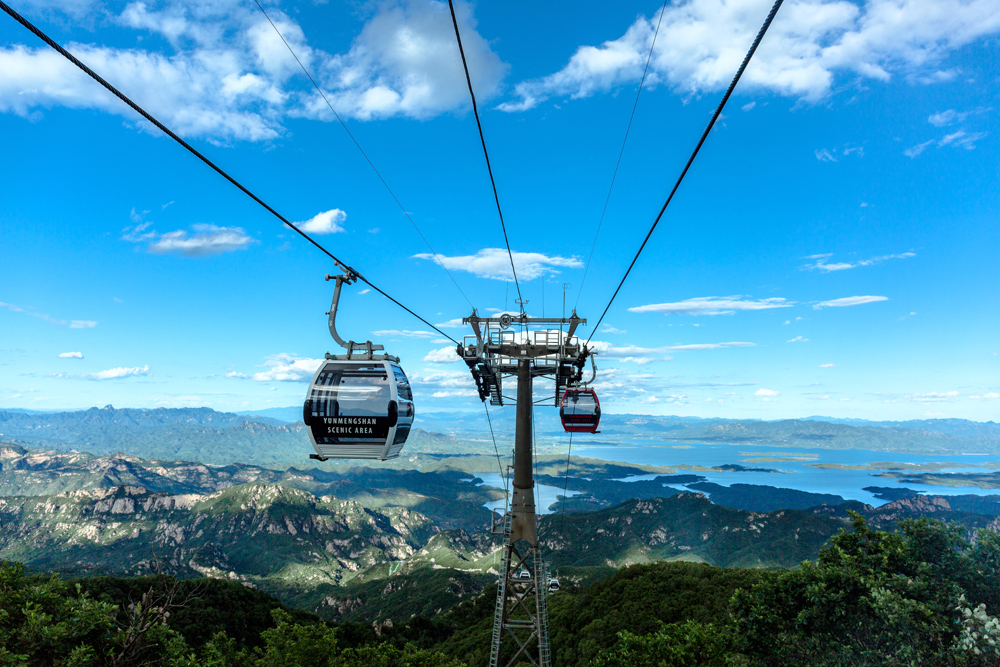 搭乘华北最长索道而上,穿行于云海之中,云蒙山峰峦叠翠的山景与密云水库波澜壮丽的湖景相映成趣。低头俯瞰,山谷怪石尽收眼底,既可以空中观景,还可以体验行于空中的刺激感。