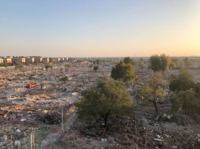 隋振江一行登上了项目北侧的六层建筑楼顶,实地查看海子角辛店棚改搬迁进度。他高兴地说,从今年2月11日到项目调研后,一直惦念着棚改的进展。没有想到这个“大兴第一难”的项目40天就完成了自主腾退,体现了属地政府和实施主体北京城建的工作智慧和担当精神。
