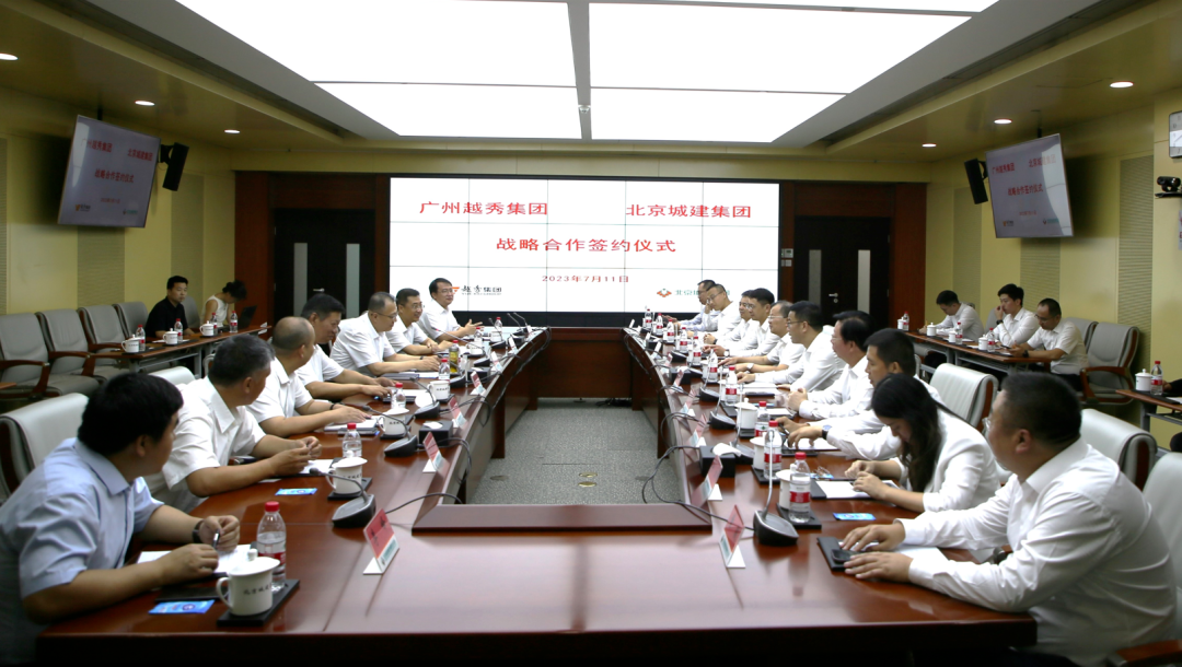7月11日上午,北京城建与广州越秀集团举行战略合作签约仪式。在越秀集团党委副书记、副董事长、总经理兼越秀地产党委书记、董事长林昭远和集团公司党委副书记、总经理裴宏伟的见证下,越秀地产联席总经理朱辉松和集团公司党委常委兼股份公司董事长、总经理储昭武代表双方在协议书上签字。越秀地产副总经理曾士钊、首席产品官洪国兵,集团公司党委常委、副总经理张锁全出席签约仪式。越秀集团与集团公司相关部室和公司相关领导参加了签约仪式。